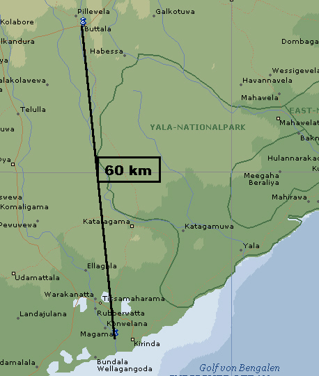 3 Guttahāla: vermutlich heutiges Buttala. Die Luftlinie zwischen Magama (=Mahāgāma) und Buttala beträgt 60 km (ungefähr die Luftlinie Zürich - St. Gallen!). Der Heerzug wäre also über 60 km lang gewesen