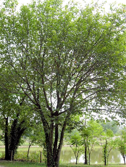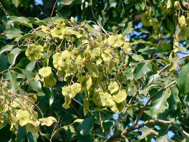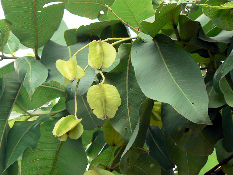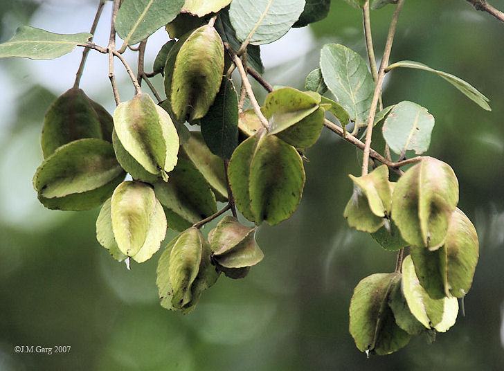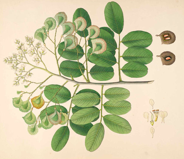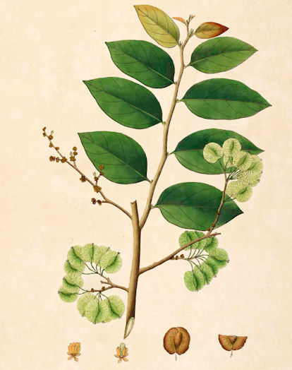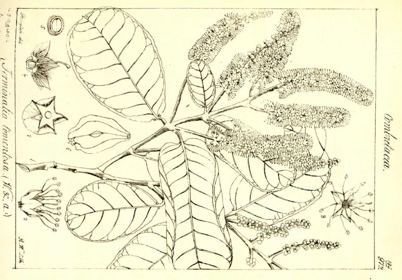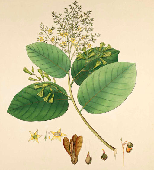A middling sized, very common, beautiful, and very useful tree. Flowering time the hot season. It differs flora all the other species known to me in having a one-celled, one-seeded nut, though the germ has uniformly five-cells, with one or two ovula in each."