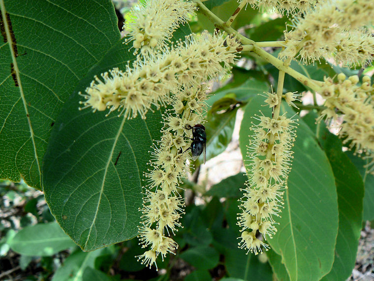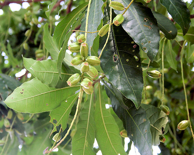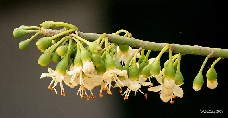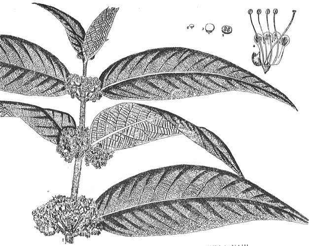 A tree, bearing male or male-hermaphrodite flowers on one and hermaphrodite on another ; which circumstance might remove it from the fifth, to the twenty-third class of the Linnaean system. It is a native of all the mountainous parts of India; flowering time from May to August. Seed ripe in January and February.