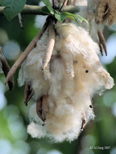 Economic Uses.—A considerable quantity of gum is yielded by this tree, valuable for many ordinary purposes. The timber is very durable, hard, and close-grained, and is employed for furniture. It is of a light colour, and is well adapted for picture-frames and similar work. In Northern India it is considered unlucky to employ the timber in house-building.—(Roxb. Rep. Mad. Exhib.) It is a frequent tree by roadsides, and has a large and umbrageous head. The tree is pollarded, and the cuttings used as firewood. It is now extensively planted on the Ganges Canal. It is of rapid growth, and flourishes in almost any soil. The leaves afford good fodder for cattle.—Bomb. Govt. Rep. 1863."