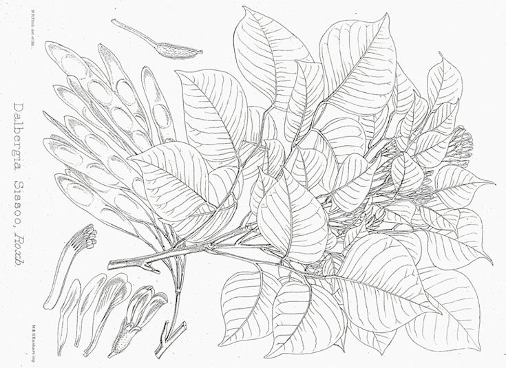 Economic Uses.—The timber is light and remarkably strong, of a light grayish-brown colour. It is good for ordinary economical purposes. It is much used in Bengal for knees and crooked timber in ship-building, as well as for gun-carriages and mail-carts. Its great durability combines to render it one of the most valuable timbers known. There are few trees which so much deserve attention, considering its rapid growth, beauty, and usefulness. It grows rapidly, is propagated and reared with facility, and early attains a good working condition of timber. Plantations have been recommended along the channels of the northern Annicuts.—(Roxb. Jury Rep. Mad. Exhib.) It attains its full size in fifty years. It is said to be proof against the attacks of white ants. The timber is very good for gun-carriages, and in some parts is largely used in dockyards. Also for saddles, boxes, and all furniture. A boat built from it is said to last twenty years. The raspings of the wood are said to be officinal, being considered alterative.—(Stewart's Punj. Plants.) Another species of Dalbergia yielding timber is the D. sissoides.— Roxb."