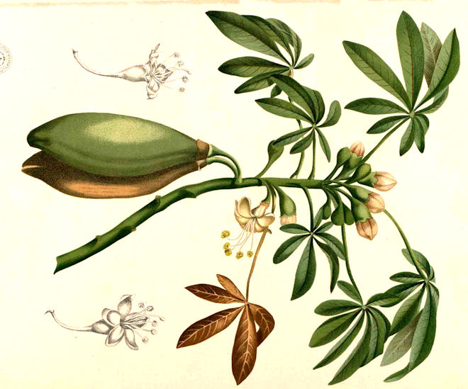 [Quelle: Pharmacographia indica : a history of the principal drugs of vegetable origin met with in British India / by William Dymock [1834-1892], C. J. H. Warden and David Hooper [1858-1947]. -- Bd. 1. -- London, 1890. -- S. 561f.]