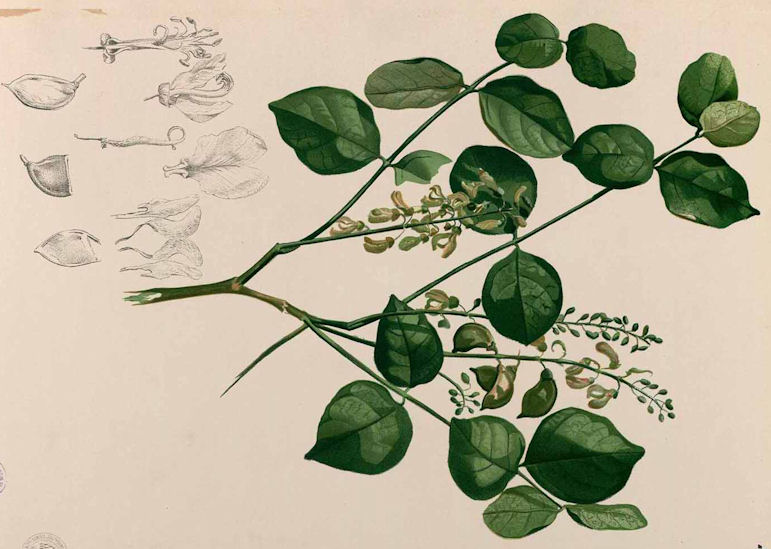 [Quelle: Pharmacographia indica : a history of the principal drugs of vegetable origin met with in British India / by William Dymock [1834-1892], C. J. H. Warden and David Hooper [1858-1947]. -- Bd. 1. -- London, 1890. -- S. 330f.]