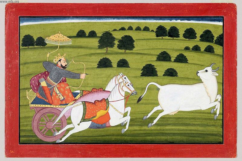 Abb.: तुरगः । Pṛthu verfolgt die Erde, ca. 1740