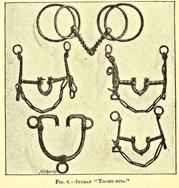 Abb.: खलीनानि । Indische Trensen mit Dornen (!)