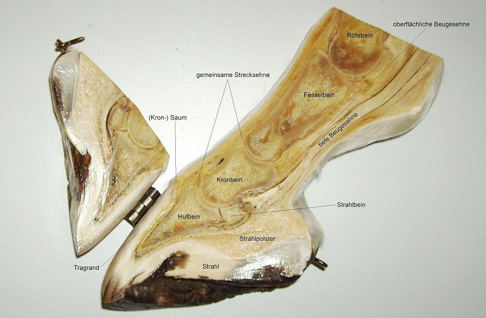 Abb.: शफम् । Schnitt durch ein plastiniertes Pferdehuf