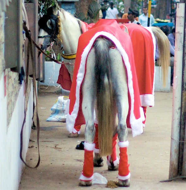 Abb.: लाङ्गुले । Weihnachtsmannpferde (!), Bangalore - ಬೆಂಗಳೂರು,