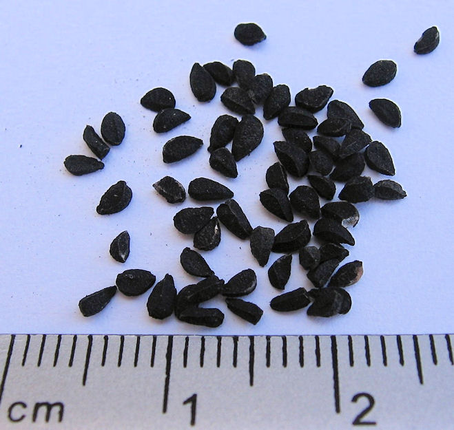 43a./b. sauvarcale 'kṣarucake tilakaṃ tatra mecake सौवर्चले ऽक्षरुचके तिलकं तत्र मेचके ।४३ क। Dunkles Sauvarcala-Salz heißt तिलक - tilaka n.: "Sesamkorn", schwarzes Sochal Salz |