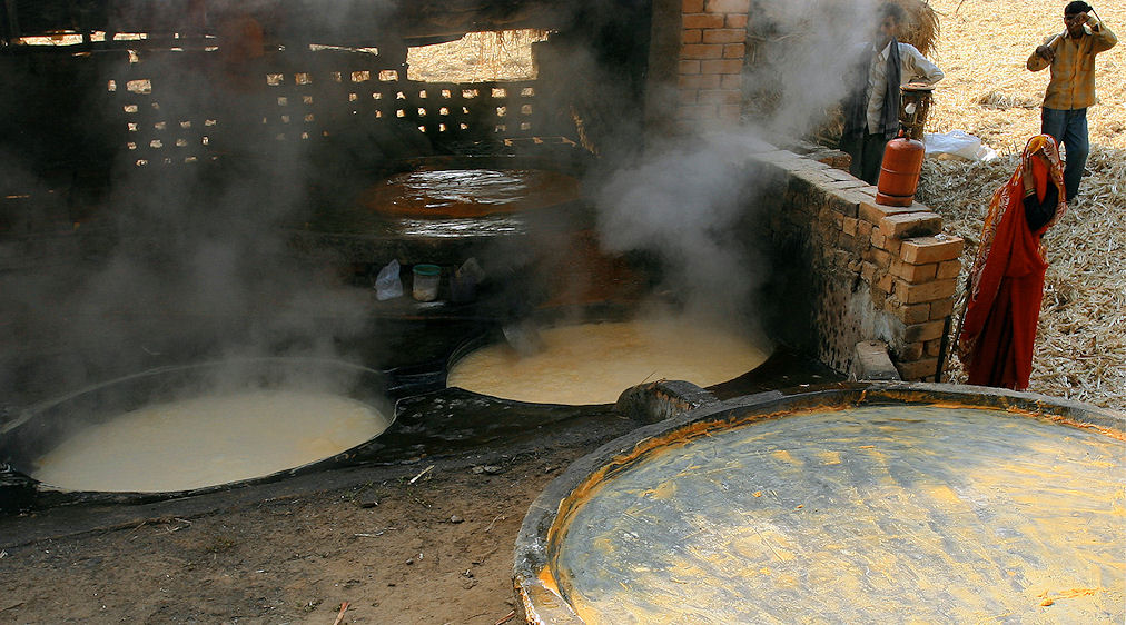 Abb.: फाणितानि । Eindicken von Zuckerrohrsaft, Patha Panihar, Madhya Pradesh