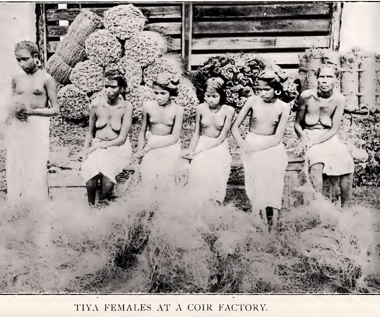 Abb.: TIYA [ടിയാൻ] FEMALES AT A COIR FACTORY.In connection with the coir industry, it is noted, in the Gazetteer of Malabar [മലബാര്], that