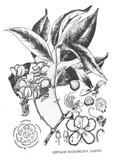 Abb.: Hiptage benghalensis (L.) Kurz[Bildquelle: Kirtikar, K. R. ; Basu, B. D.: Indian medical plants with illustrations. Ed., revised, enlarged and mostly rewritten by E. Blatter, J. F. Caius and K. S. Mhaskar. -- 2. ed. -- Dehra Dun : Oriental Enterprises. -- 2003. -- 11 Bde : 3846 S. : Ill. ; 26 cm. -- Reprint der Ausgabe von 1933, die Abbildungen stammen aus der Ausgabe von 1918. -- Vol. 2. -- S. 577]}