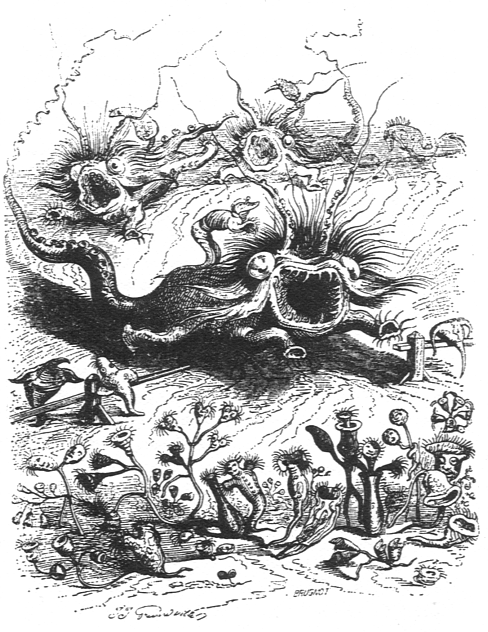 arme Vorticellen zu verzehren". -- Aus: Grandville, Jean Ignace Isidore Gérard <1803 - 1847>: