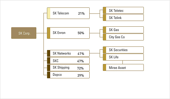 "SK is Korea's third largest conglomerate and one of the leading business organizations in Asia. We are made up of 40 member companies including seven that are listed on the Korea Stock Exchange. We have a presence on six continents and number 25,000 employees of many nationalities. Most important, we are united by a powerful management vision and philosophy that seeks to achieve superior results across the lines of our business worldwide.