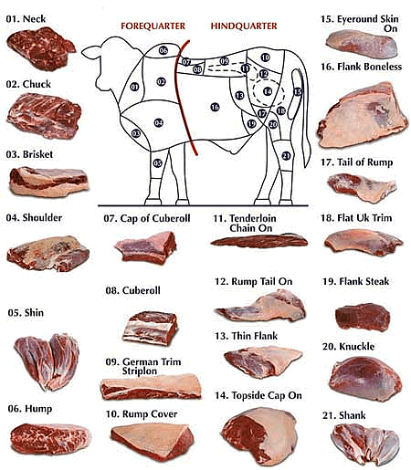 - Zweitens sind nur vier Stücke der Oberschenkelmuskulatur von Tieren der Rindergattung zugelassen: die Eckstücke oder Oberschalen, die Unterspälten, die runden Mocken sowie die runde, flache Nuss.