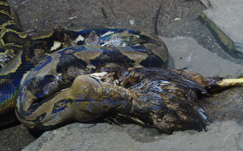 Abb.: Netzpython - Python reticulatus - frisst Huhn
