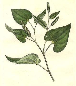 The dried catkins and the root of Piper longum are used in medicine. They are considered heating, stimulant, carminative, alterative, laxative and useful in cough, hoarseness, asthma, dyspepsia, paralysis, etc. Old long pepper is said to be more efficacious than the fresh article. In the form trikatu or the three acrids ( see Piper nigrum), it is much used as an aromatic adjunct in compound prescriptions. Powdered long pepper, administered with honey, is said to relieve cough, asthma, hoarseness, hiccup and sleeplessness. A mixture of long pepper, long pepper root, black pepper and ginger in equal parts, is prescribed by several writers as a useful combination for catarrh and hoarseness.
