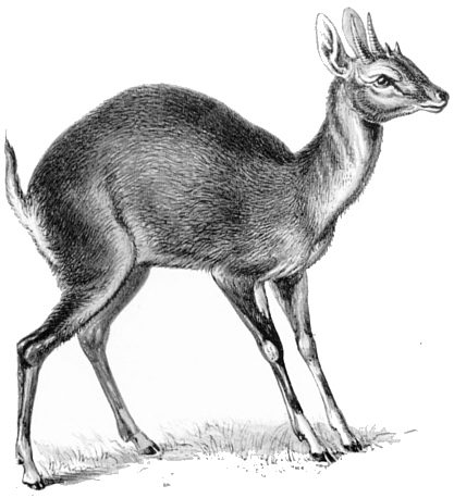 The present species does not bound like the Indian antelope when disturbed. It has a peculiar habit of uttering a sharp hiss when alarmed and of stamping with its fore-foot. The doe is often seen followed by two fawns. I cannot find that the rutting-season or the period of gestation has been observed. The flesh is excellent.