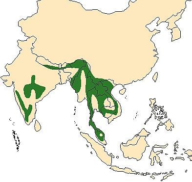 Abb.: Verbreitungsgebiet des Gaur - Bos frontalis