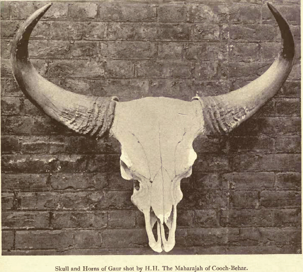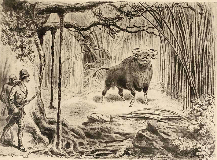 [Quelle: Sanderson, G. P. (George P.): Thirteen years among the wild beasts of India: their haunts and habits from personal observations; with an account of the modes and capturing and taming elephants. -- 5th ed. -- London, W. H. Allen, 1893. -- xviii, 387 S. : Ill. ; 23 cm. -- S. 243 - 252. -- Online: http://www.archive.org/details/thirteenyearsamo00sand. -- Zugriff am 2007-09-14. -- Dort auch ein weiteres lesenswertes Kapitel über den Gaur. ]