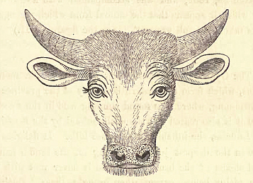 (Head of Gyall, from Linnean Transactions.)made it a practice to allow them to range abroad, amongst the hills and jungles at Chittagong, during the day, to browse ; a keeper attending to prevent their straying so far as to endanger losing them. They do not thrive so well in any part of Bengal as in the afore-mentioned province, and in the adjoining one, Pipperah, where, I believe, the animal is also to be found. I have heard of a female Gyall breeding with a common Bull. I wish it were in my power to give you more particulars, but I am describing entirely from memory."" I constantly