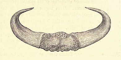Skulls from the Duars of Bhutan, the Mishmi hills, and the Malay Peninsula are much broader in proportion across the forehead than those from the Indian Peninsula; but I cannot say whether the broad-headed type is alone found east of the Bay of Bengal. I think not. There is in the fine collection presented by Mr. Hume to the British Museum a very broad skull from Salem, South India. The only Mishmi skull I have seen, one in Mr. Hume's collection, has the vertex arched and the forehead broad, but wants the frontal concavity, and thus shows a tendency towards B. frontalis. The horns in all these heads have the normal curve of the gaur (see fig. 159, p. 488).
