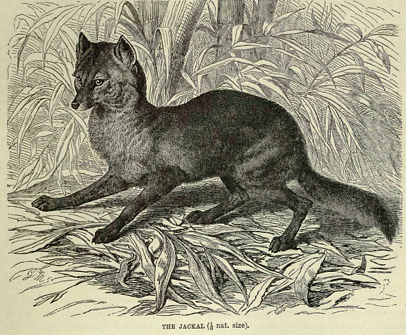 With the common jackal we come to the first of a group of species of smaller size than the true wolves, with which they are to some extent connected by the one last described. Their bushy tails are relatively shorter than in the wolves, being generally equal to about one-third the length of the head and body; and their skulls