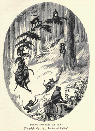 A slender verbal hint suffices to give a complacent sense of having once at least marched in the foremost files of time. But they would be on more plausible, if not more solid ground in essaying to show that the Hindu respect for life, the admission of the essential unity of the life-spark, whether in man or moss, and the special regard for the ancestral monkey, its deification, and the traditions of its aptitude for speech, labour, and war, were proofs that the philosophy of the East has for ages sat in tranquil occupation of a peak of discovery to which the vanguard of Western science has but now attained."[Quelle: : Kipling, John Lockwood <1837-1911>: Beast and man in India : a popular sketch of Indian animals in their relations with the people. -- London ; New York : Macmillan, 1904. -- xii, 401 S. : Ill. ; 24 cm. -- S. 56 - 74. -- Online: http://www.archive.org/details/beastmaninindiap00kipliala. -- Zugriff am 2007-10-25]