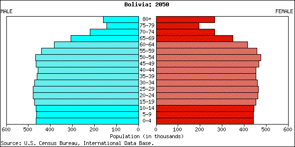 Abb.: Altersaufbau der Bevölkerung Boliviens, Projektion für 2050