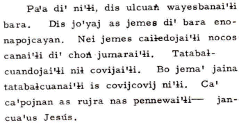 II, UU Zusätzlicher Konsonant: TR Alphabet: A, AA, Ch, E, H, I, II, K, L, LL, M, N, Ñ, O, P, Q, R, S , SH, T, TR U, UU, W, Y. |
