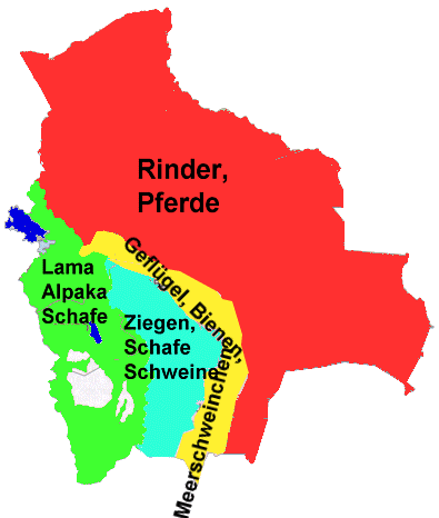 030. Altiplano sud | 74.000 | Bohnen, Kartoffeln, Gerste, Quinoa | Rinder, Schafe, Alpaka, Lama, Schweine, Geflügel |
