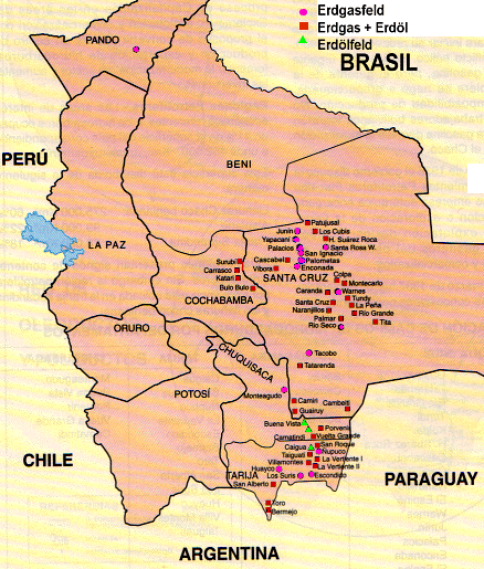 Abb.: Erdöl- und Erdgasfelder Boliviens