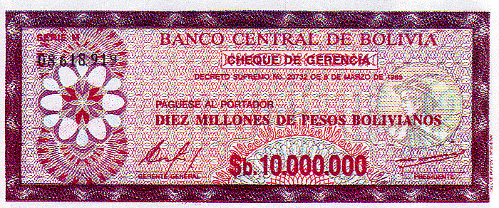 Abb.: Ausgangspunkt der Nueva Política Económica: Inflationsgeld (10 Mio. Pesos Bolivianos), März 1985