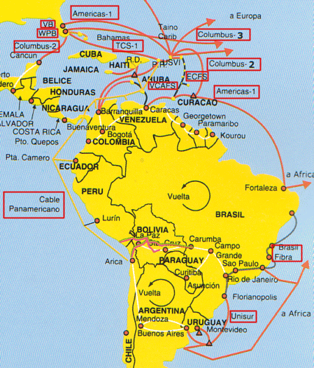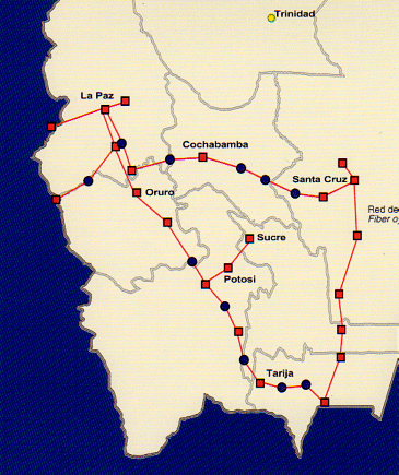 Seit 1995 wurde in Bolivien ein unterirdisches Glasfasernetz mit einer Länge von 3.200 km verlegt. Es verbindet die großen Städte Boliviens untereinander sowie Bolivien mit dem Ausland (Perú, Chile, Argentinien) verbindet. Bolivien ist Mitglied von Latin American Nautilus, einem Glasfasernetz über 30.000 km, das die großen Städte Südamerikas untereinander und mit Zentralamerika, den USA und Europa verbindet. Das Glasfasernetz hat eine Kapazität von 2,5 Gb/s.