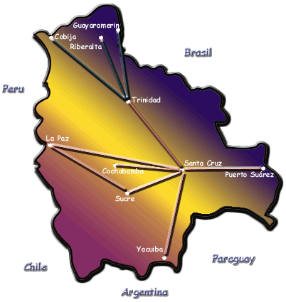 La Paz und Santa Cruz sind die Hubs für den internationalen Verkehr über das Glasfasernetz.