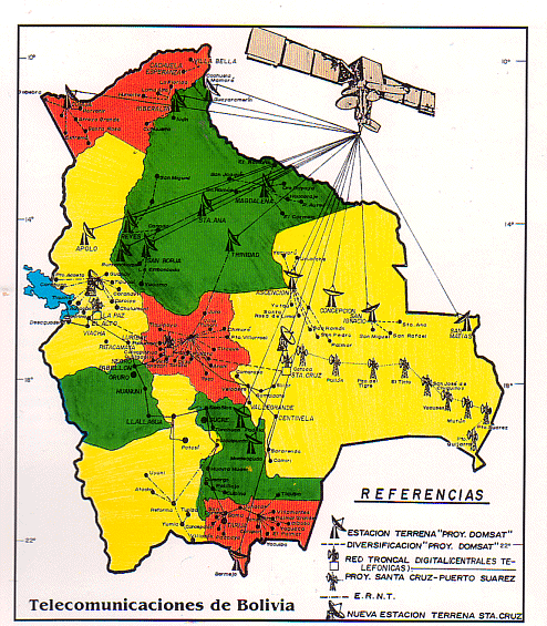 Das Telephonnetz Boliviens hat 18 lokale und zwei nationale-internationale Vermittlungszentralen.