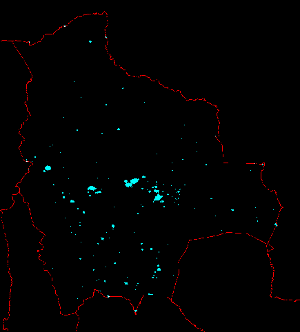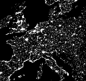 | Abb.: Satellitenphoto: Bolivien bei Nacht [Quelle: http://www.darksky.org/ida/graphics/bolivia.gif. -- Zugriff am 2001-09-26] | Abb.: Zum Vergleich: Satellitenphoto: Mitteleuropa bei Nacht [Quelle: http://www.darksky.org/ida/graphics/europe_lights.gif. -- Zugriff am 2001-09-26] |
