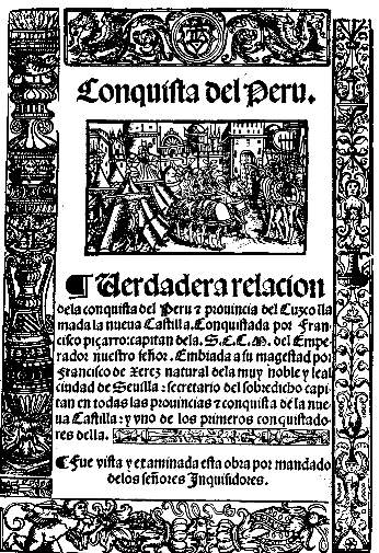 Xerez, Francisco de: Conquista del Peru : verdadera relacion dela conquista del Peru y provincia del Cuzco llamada la nueva Castilla. Conquistada por Francisco pizarro ... -- Salamanca, 1547. -- [Offizielle Chronik Pizarros]