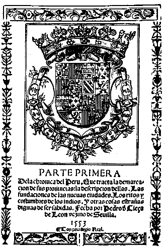 Cieza de Leon, Pedro d' <1518, Llerena - 1554, Sevilla>: Parte primera de la chronica del Peru. -- Sevilla, 1553