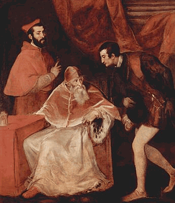 Abb.: Tizian <1488/90 - 1546>: Papst Paul III.Papst Paul III. (1468 - 1549, Papst 1534 - 1549) verurteilt in der Bulle Pastorale officium die Versklavung der Indios.