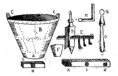 Wie man die Öfen zur Gewinnung von Metallen aufbauen soll Wie immer man die Kessel erhitzt, so dass das Wasser darin heiß wird, erreicht man den erwünschten Effekt, nämlich den Erzen die Edelmetalle schnell zu entziehen, ohne Verluste an Quecksilber. Um aber Kosten zu sparen und Hindernissen vorzubeugen, die vorkommen können, soll man die Öfen folgendermaßen bauen:
