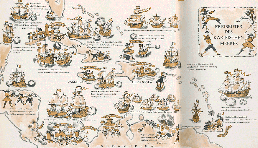 "Und so gibt es viele, die dafür sorgen, dass bei der Abfahrt [von Las Indias, wo ähnlich wie in Sevilla kontrolliert wurde] weder das Gold noch das Silber, das ihnen zukommt, registriert wird, und die auf diese Weise den König um das bringen, was ihm zusteht. Sie ziehen es vor, sich mit den Kapitänen ins Einvernehmen zu setzen, obwohl deren Gewinnanteil viel höher ist, weil sie das Risiko fürchten, außer schönen Worten überhaupt nichts zu bekommen. Bevor die Flotte die Höhe von Cädiz erreicht, wird sie von holländischen oder englischen Schiffen dort oder in San-lücar schon erwartet, und sowie man die Nachricht hat, dass sie sich nähert, laufen die Schiffe aus, um auf offener See mit ihr zusammenzutreffen. Dort nehmen die Kapitäne als Helfershelfer ihrer Auftraggeber deren Anteil an Bord und bringen ihn weiter nach England, Holland oder anderswohin, ohne dass er sich je in einem spanischen Hafen befunden hätte. Sogar die Kaufleute aus Sevilla schicken auf diesen Schiffen ihr gesamtes Bargeld in diese Länder, wo sie frei über ihr Geld verfügen können, ohne darum bangen zu müssen, dass man es ihnen abnimmt." [[Brunel, Antoine de <1622-1696>]: Voyage d'Espagne cvrieux, historique et politique. -- Paris : Charles de Sercy, 1665. -- Übersetzung: Wirtschaft und Handel der Kolonialreiche / hrsgg. von Piet C. Emmer .... -- München : Beck, ©1988. -- (Dokumente zur Geschichte der europäischen Expansion ; Bd. 4). -- ISBN 3406306616. -- S. 481. -- {Wenn Sie HIER klicken, können Sie dieses Buch bei amazon.de bestellen}]