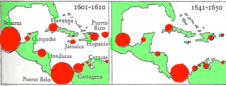 Abb.: Verlorengegangene Schiffe 1550 bis 1650[Quelle der Abb.: Chaunu, Pierre <1923 - >: Europäische Kultur im Zeitalter des Barock. -- Zürich : Ex Libris, ©1968. -- (Knaurs große Kulturgeschichte). -- S. 384. -- Originaltitel: La civilisation de L'Eurpe classique (1966)]