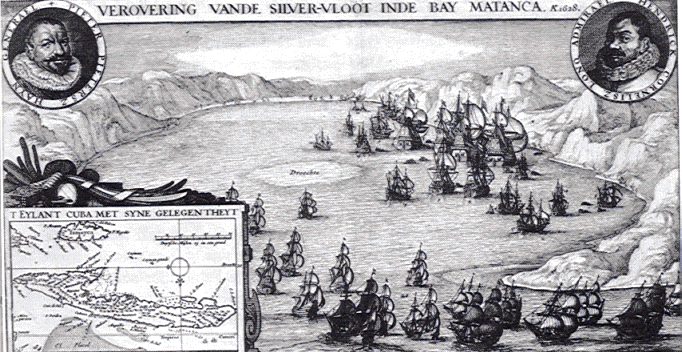 Abb.: Die spanische Silberflotte wird bei Havanna von der holländischen Westindiscehn Handelskompanie gekapert