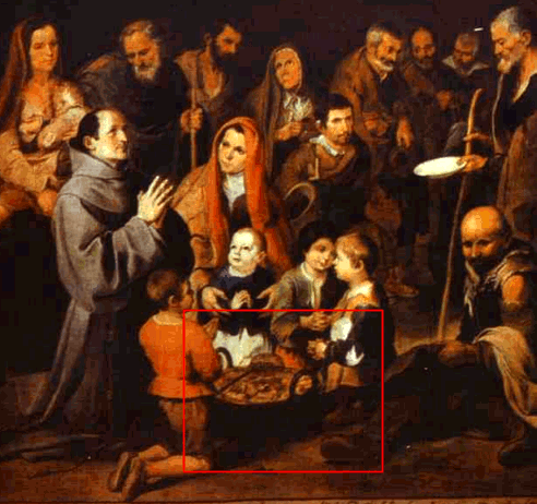 Abb.: Ein Kessel Kartoffel für die Armenspeisung in Sevilla: Bartolomé Esteban Perez Murillo <1618 - 1682>: San Diego speist die Armen, Kinder und Alten, 1645