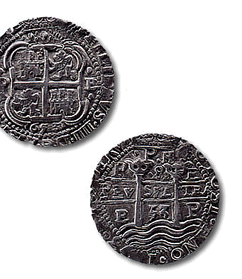 Abb.: Ocho Reales, geprägt in Potosí 1653 [Bildquelle: