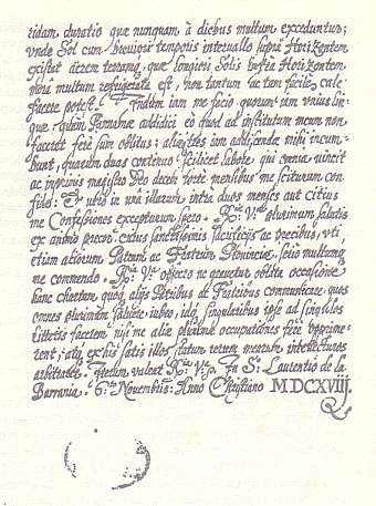 Vor sechs Monaten erhielt ich zwei [Briefe] von Euer Gnaden durch einen Boten, den mir Gonçalo Franco schickte, der in der Stadt La Paz wohnt, das sind 80 Meilen von Potosí, wo ich wohne. Gott unser Herr weiß, welche Freude ich daran hatte zu erfahren, dass Ihr und die anderen [Mitglieder unserer Familie] bei guter Gesundheit seid, obwohl es mich sehr geschmerzt hat, von dem Tod einiger der Unseren zu lesen und auch über die Mühen und die Einsamkeit, die Ihr dort [in Spanien] zu erdulden habt. Aber das sind Angelegenheiten Gottes, wir schulden Ihm Dank und haben uns Seinem Willen zu fügen.