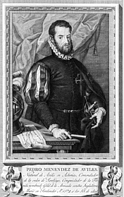 Abb.: Pedro Menéndez de AvilésAuf Empfehlung von Pedro Menéndez de Avilés (1519 - 1574), der seit 1555 die Silberflotte mehrfach die Silberflotte sicher heimgebracht hatte, erlässt der Consejo de las Indias mehrere Anordnungen zur Sicherheit der Silberflotten: