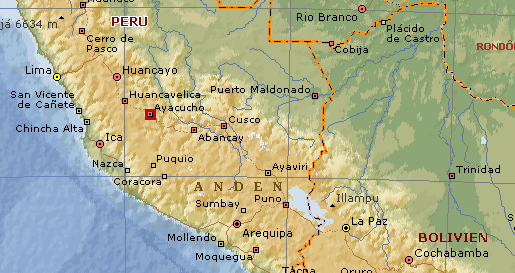 Abb.: Lage von Ayacucho (©MS Encarta)Kapitulation von Ayacucho: die königlichen Truppen kapitulieren vor dem Heer von Antonio José de Sucre y Alcalá (1795, Venzuela - 1830, Kolumbien)