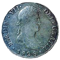 Abb.: 8 Reales "Ferdinandus VII Dei Gratia", Münzprägung Potosí, 1823