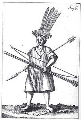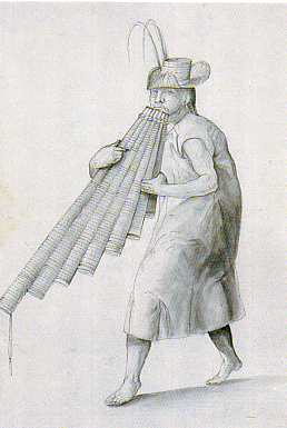 Abb.: Flötenspieler, Jesuitenreduktionen, Mojos [Archivo de Indias, Sevilla][Bildquelle: Discovering the Americas : the Archive of the Indies / by Pedro González García ... -- New York [u.a.] : Vendome, ©1997. -- ISBN 0-86565-991-5. -- S. 83]